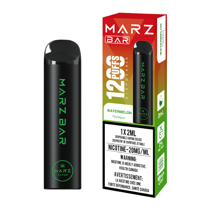 The Marz Bar is a non-reachable 2ml disposable vape that comes in a variety of flavours. It uses a mesh coil to optimize flavour and performance. The MarzBar is prefilled with 20 mg/mL nic salt E-juice and is rated up to 1200 puffs.
